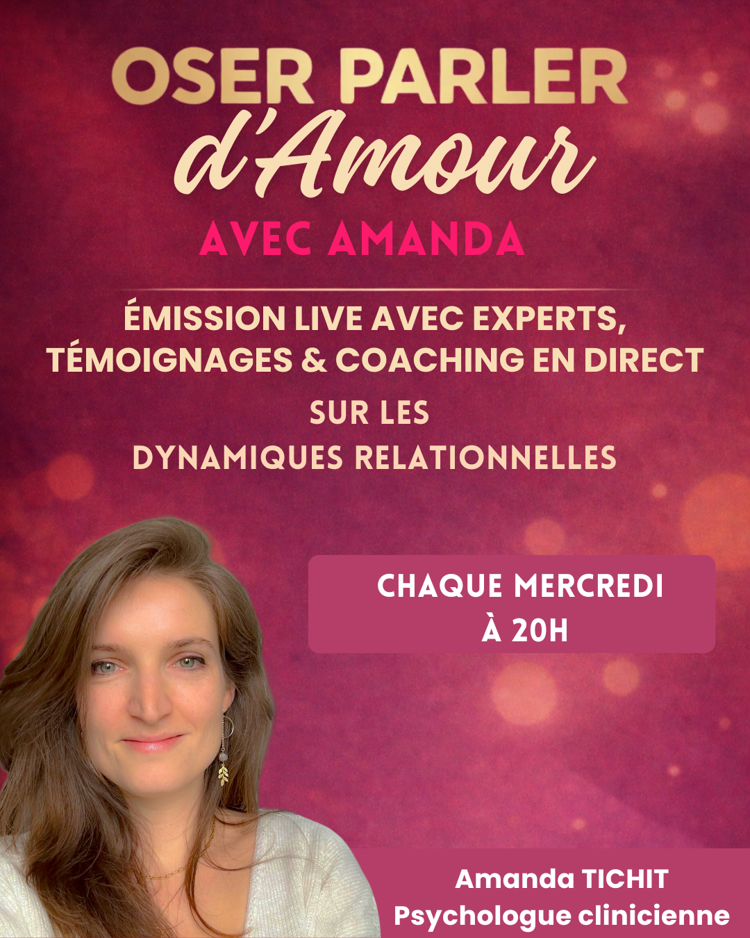 Que tu sois en couple, célibataire, en pleine remise en question ou en sortie de relation, cette émission est faite pour toi si tu as envie de relations plus conscientes, plus justes et plus vivantes.